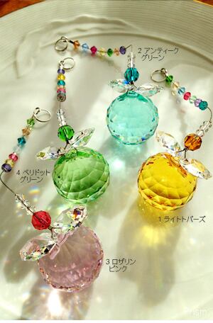 ライトトパーズ・アンティークグリーン・ロザリンピンク・ペリドットグリーンの4色から、お好みの一色をお選びください。天使(エンジェル)モチーフのパーツが添えられた、愛らしくも上品なサンキャッチャーです。